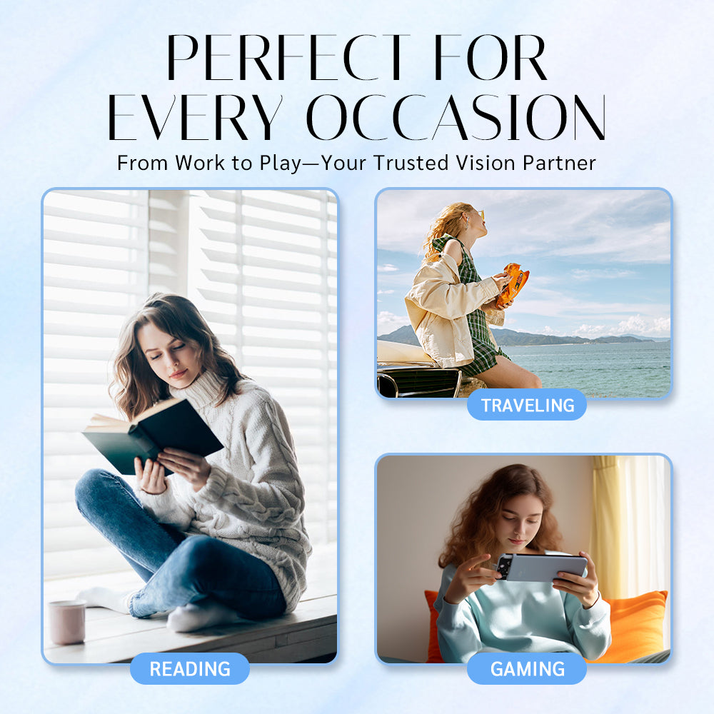 These anti-blue light progressive multifocal glasses are perfect for indoor and outdoor wear. Whether you're reading, watching TV, gaming, traveling, or fishing, these glasses have got you covered. A thoughtful and practical helper for anyone with presbyopia! 🌞📚🎮
