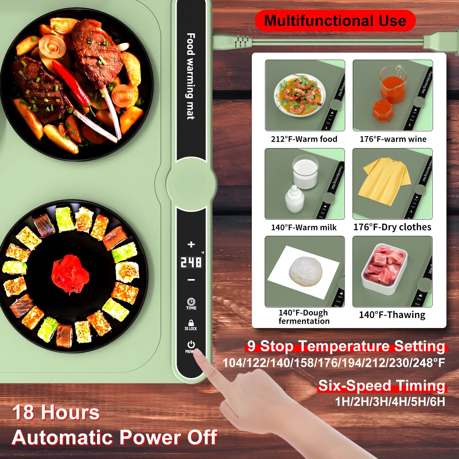🔄 Versatile Year-Round Use: Beyond serving as a food warmer, our product is a versatile home assistant. Unlock a range of functionalities, from quick defrosting to warming facial masks and facilitating dough fermentation. Elevate your daily routine with a dynamic warming tray that adapts to your diverse needs throughout the year. 🌟🍞