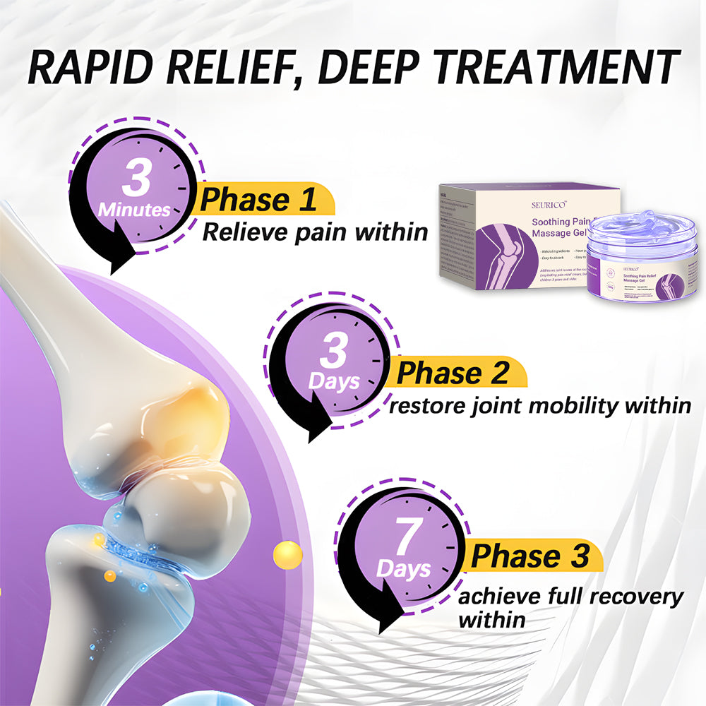 Approved by orthopedic specialists, Seurico™ Turmeric & Emu Oil Arthritis Pain Relief Massage Gel delivers fast relief, soothing pain in just 3 minutes. It restores joint mobility within 3 days and supports full arthritis recovery in just 7 days. Formulated with natural anti-inflammatory ingredients like organic turmeric and pure emu oil, this gel penetrates deeply to reduce inflammation, lubricate joints, and promote long-term healing. Clinically proven and easy to use, it’s the ultimate solution for arthritis sufferers seeking quick relief and lasting recovery.