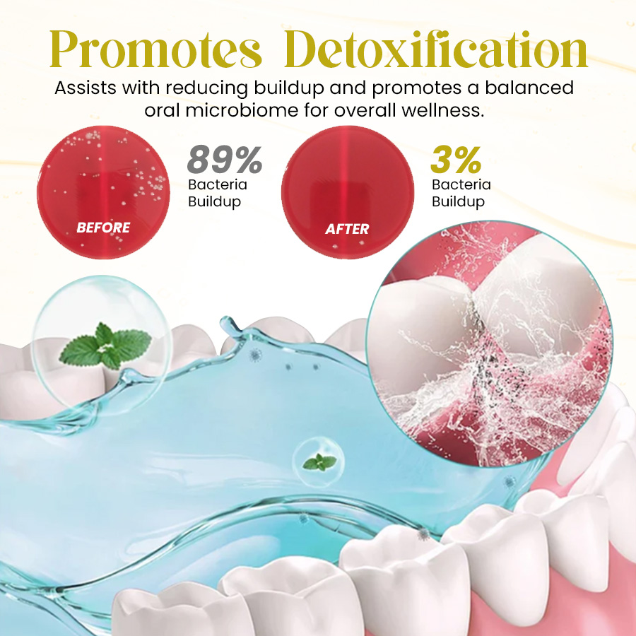 This isn’t just another mouthwash. Powered by natural ingredients and backed by science, it deeply cleanses your mouth, removes harmful bacteria, and soothes inflamed gums—all without harsh chemicals.