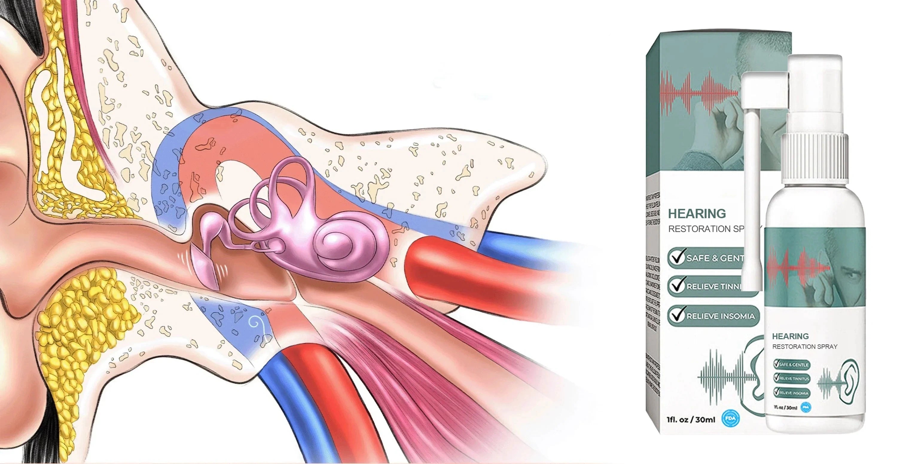 Designed to restore hearing and cochlear cells, deep clean ears, relieve inflammation and tinnitus